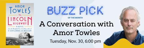 Towles is the New York Times-bestselling author of the November Buzz Pick of the Month, The Lincoln Highway, as well as A Gentleman in Moscow and Rules of Civility.