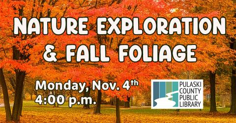 At this program, Ellen from the Tippecanoe River State Park will lead kids outdoors to explore the world around them and find fall foliage!