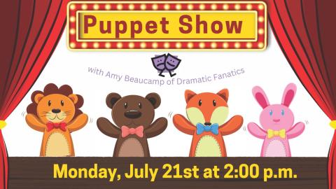 Join us for a spectacular Puppet Show with Amy Beaucamp of Dramatic Fanatics on Monday, July 21st at 2:00 p.m.