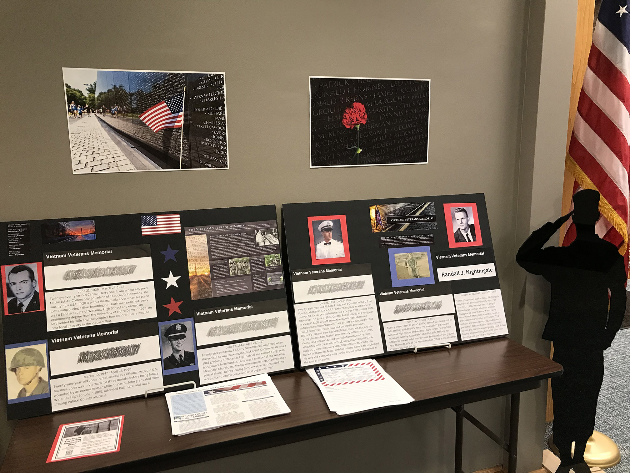 The Vietnam Veterans Memorial display can be viewed in person in the Delores "Dee" Galbreath Local History Room at the Library.